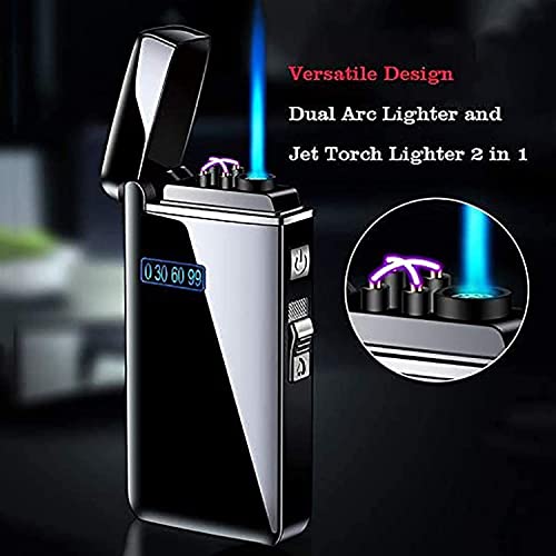 Dual Arc Aansteker, Jet Flame Torch Sigaar USB Aansteker 2 in1 Oplaadbare Winddichte Vlamloze Draagbare Aansteker for Kaarsen, Wierook, Camping (Color : Blacka)