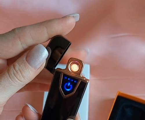 Elektrische aansteker, oplaadbaar via USB, winddicht, elektronisch met batterij-indicator, leuk cadeau voor dames en heren. ★ Nieuwe USB-aansteker: deze USB-aansteker is economisch, voordelig en milieuvriendelijk. Elegant design, oplaadbaar via USB, geen gas en vloeistoffen nodig, biedt veiligheid en energiebesparing. ★ Inschakelen met een eenvoudige aanraking: deze USB-sigarettenaansteker beschikt over een intelligente bediening die het veiliger en duurzamer maakt. De led-indicator geeft aan of de accu moet worden opgeladen of wanneer de accu volledig is opgeladen. ★ Vlamloos en winddicht: deze aansteker is vlamloos, zodat je hem ook bij wind kunt gebruiken. Kan onder alle omstandigheden worden gebruikt, het is de beste aansteker voor rokers. ★ USB-opladen: de aansteker wordt geleverd met een USB-oplaadkabel. Snel opladen. Hoogwaardig materiaal en de hoogwaardige accu zorgen voor een lange levensduur. Deze elektrische aansteker kan worden aangesloten op mobiele telefoons, pc’s, notebooks. ★ Veelzijdig inzetbaar: de USB-aansteker is licht en eenvoudig mee te nemen.