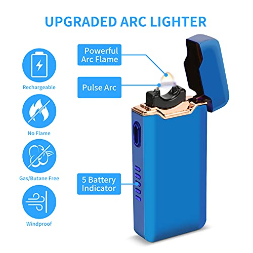 Hier is een boogaansteker die krachtige nieuwe plasmatechnologie gebruikt, licht in een mum van tijd, vlamloos – geen vlam, wat veiliger is, onbedoelde branden voorkomen. Met 5 LED-batterij-indicatoren, gemaakt van hoogwaardige zinklegering, lichtgewicht en draagbaar, kan worden gebruikt als een perfect cadeau voor verjaardag, vrienden, familie, geliefde, zaken en meer.
