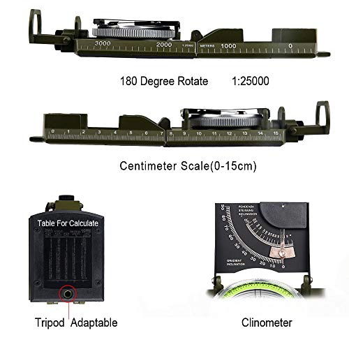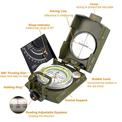 Specification: BIJIA Professioneel multifunctioneel kompas, volledig metalen militair waterdicht kompas met hoge nauwkeurigheid met hellingsmeter en bubbelniveau voor wandelen, klimmen, varen, verkennen, jagen, geologie..