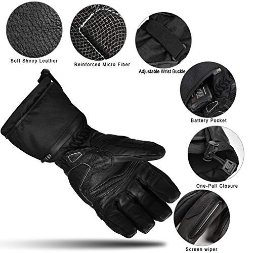 Professionele motorhandschoenen met maximale aansluiting: versterkte naden en koolstofvezelenkels bieden uitstekende bescherming. Handpalm en vingers met zacht schapenleer. Binnenkant met geïsoleerd katoen, verwarmingselement, winddicht en waterdicht membraan en ademende comfortabele fleecevoering. Antislip, sneldrogend. Het klittenbandontwerp aan de pols is verstelbaar en beschermt je pols volledig.