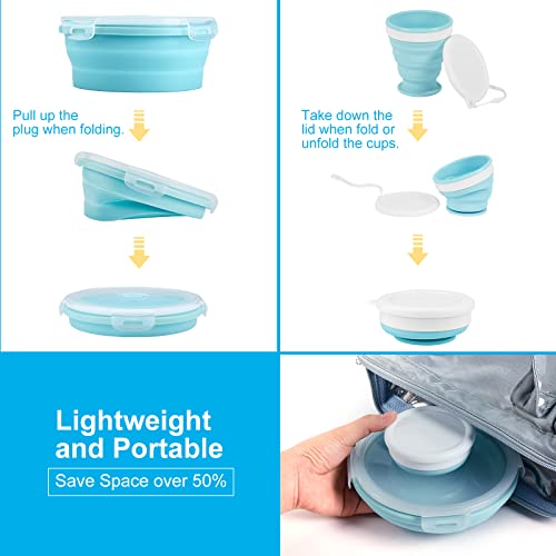 Premium materiaal: de opvouwbare reiskom en de opvouwbare bekers zijn gemaakt van voedselveilige siliconen, niet giftig, compact, anti-aanbak en gezond.