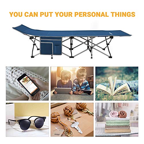 【Delicaat ontwerp】 Het hoofd van het campingbedje heeft een ergonomisch ontwerp, dat uw nekdruk beter kan verlichten en u comfortabel buiten kunt slapen. Een praktisch zijvak met 3 compartimenten biedt opbergruimte voor campingbedden zoals een zaklamp, iPad, portemonnee, sleutel, mobiele telefoon, bril, boeken, enz.