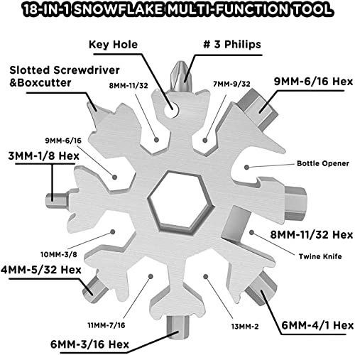 Specification: 3 Stks 18 in 1 Sneeuw Multi Flake Tool met Gift Box Kerstcadeaus voor Mannen, Draagbare Vlek Stalen Flesopener Sleutel Mini Pocket Tool Kit voor Xmas DIY Klusjesman, Vader Papa, Echtgenoot