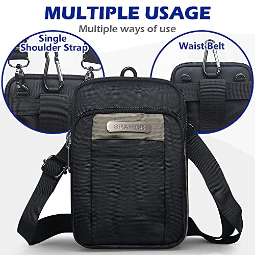 SPAHER Kleine zijtas voor heren Schoudertas Buitensport Heuptas voor wandelen Crossbody Tactical MOLLE EDC Mobiel Pouch Riem Heuptas Business Heuptas Heuptas Messenger Sling Bag Reizen Sporttas Zwart